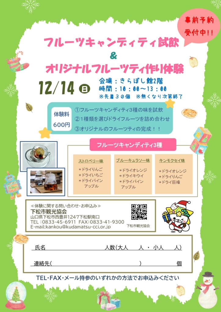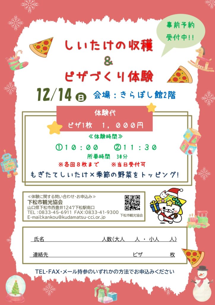 体験の問い合わせ・お申込みは下松市観光協会 ℡(0833)45-6911まで