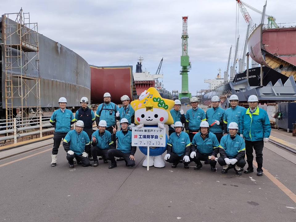 「ものづくりのまちくだまつ」産業見学ツアー2025in笠戸島」が開催されました! 投稿日 2025.12.14 15:02 下松市では、市内の小中学校生に「ものづくりのまち下松」の素晴らしさを知ってもらい、ふるさとへの愛着と誇りを育むことを目的として、家族参加型の産業見学ツアーが開催されました。ツアーでは普段見ることができない新笠戸ドックの工場見学の後、国民宿舎大城に移動して昼食をとり、ひらめきパーク笠戸島を見学・体験という行程で実施されました。