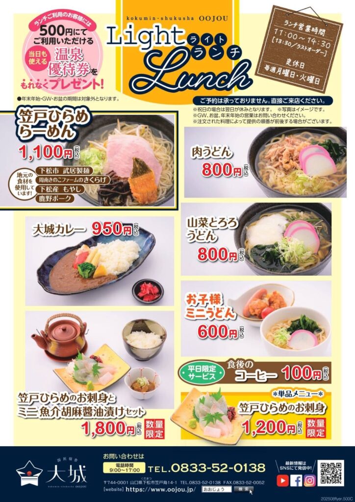 国民宿舎大城のレストラン「ソワール」に、「笠戸ひらめらーめん」が新登場!!