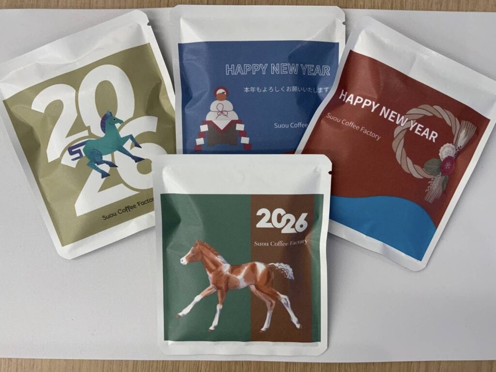 お正月コーヒードリップパック入荷! 投稿日 2025.12.26 10:27 2026年の干支“馬”のデザイン全4種類が入荷しました!新年のご挨拶や手土産にもぴったりのアイテムです。一年の始まりのご挨拶にいかがでしょうか