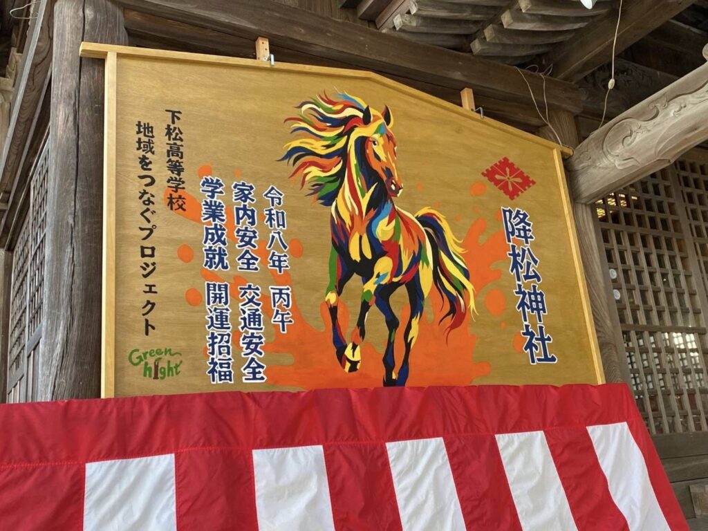 降松神社の境内には、下松高校の生徒と地域の皆さんが描いた巨大絵馬も飾られていましたよ!