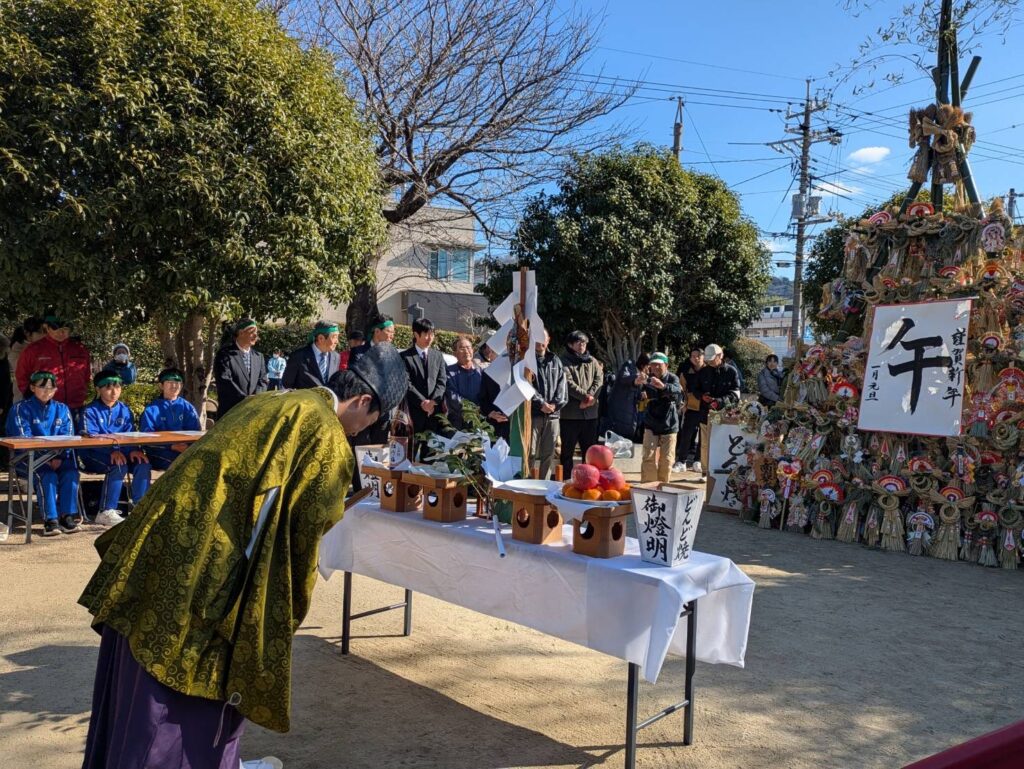 地域の子どもたちも参加し、1年間明るく元気に過ごせるようお祈りをしました!