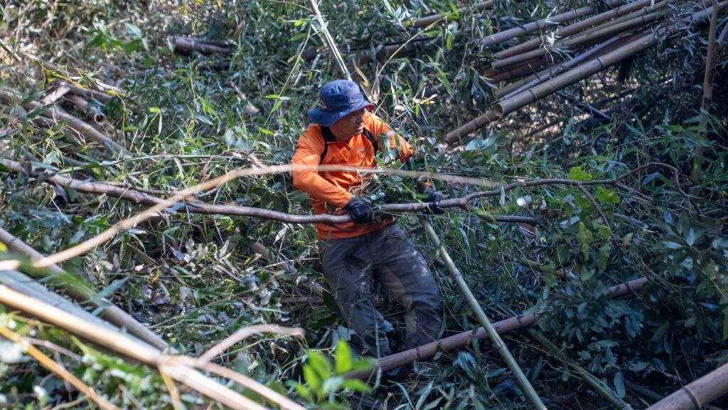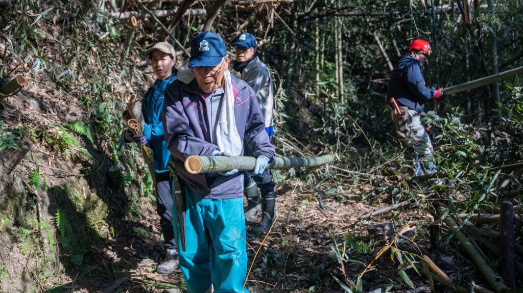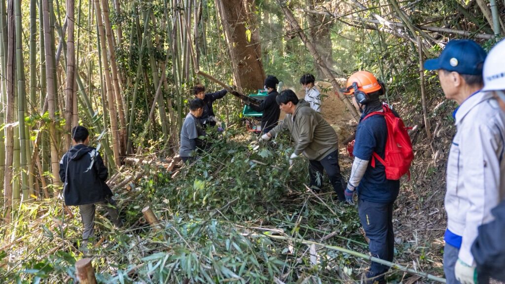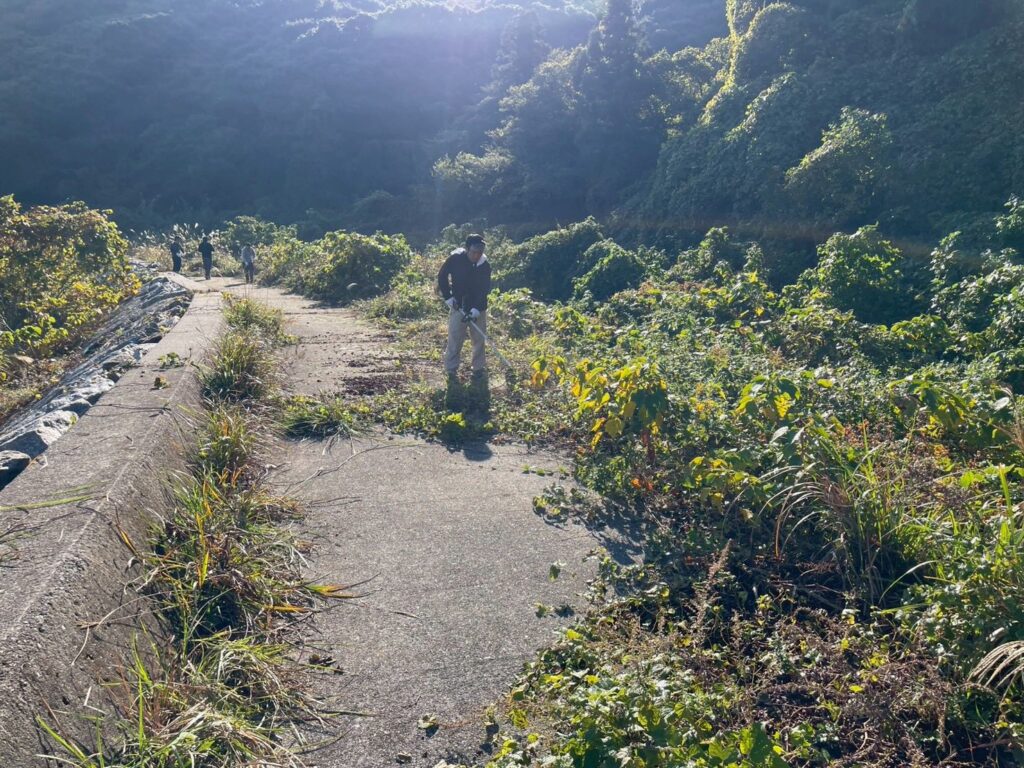 今回は「垰ノ浦の竹林整備」と「本浦〜東風浦の草刈」を2班に分かれて実施。
