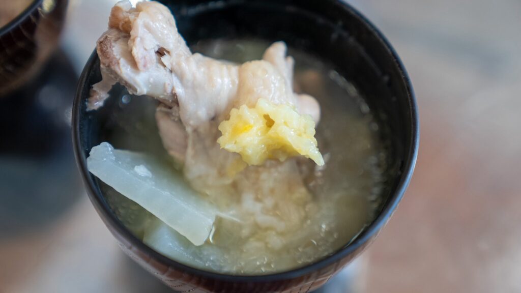 管理栄養士・藤田恵美子さん(笑みごはん)考案の「笠戸島レモン香る リカバリー参鶏湯」