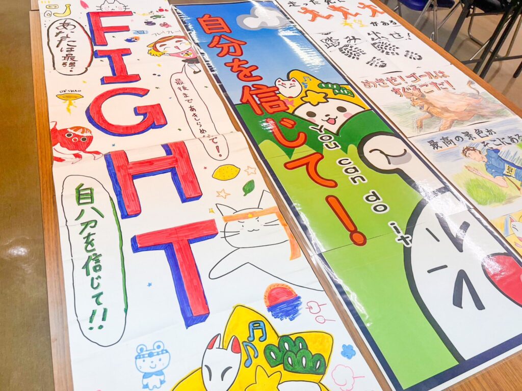 生徒の皆さんが心を込めて書いてくれたメッセージカードと、大会屈指の難所「スカイ1号」に設置される応援ボードは、きっとランナーの背中をそっと押してくれるはずです。